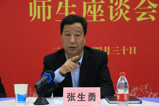 张生勇在讲话时指出,全校上下和广大青年要深入学习贯彻落实习近平总书记在中央政治局第十四次集体学习时的重要讲话精神和在纪念五四运动100周年大会上的重要讲话精神,以“四个讲清楚”为着力点,加强对五四运动历史意义的研究,为学生讲清楚中国共产党为什么“能”、马克思主义为什么“行”、中国特色社会主义为什么“好”等重大理论问题,树牢“四个意识”,坚定“四个自信”,坚决做到“两个维护”;各级团组织要聚焦思想引领根本任务,引导广大青年把人生奋斗汇入时代洪流,以“青春心向党 建功新时代”的奋斗姿态,用“奋斗的青春最美丽”的实际行动,拥抱新时代、奋进新时代;广大青年学子要牢记总书记嘱托,在中国共产党领导下,在五四精神的感召下,“勤学、修德、明辨、笃实”“爱国、励志、求真、力行”,以朝气蓬勃的创新活力、英勇无畏的责任担当、积极热血的青春风采,谱写新时代中国青年的人生华章。