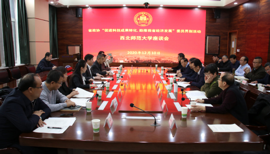 12月10日,省政协科教卫体委员会主任管钰年、副主任朱卫国带领20名科教卫体界别委员来到西北师大,专题调研学校科技成果转化和服务地方经济社会发展工作。西北师大党委书记张俊宗主持座谈会,西北师大副校长邓小娟、学校相关部门负责人、部分省政协委员参加座谈会。