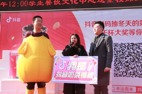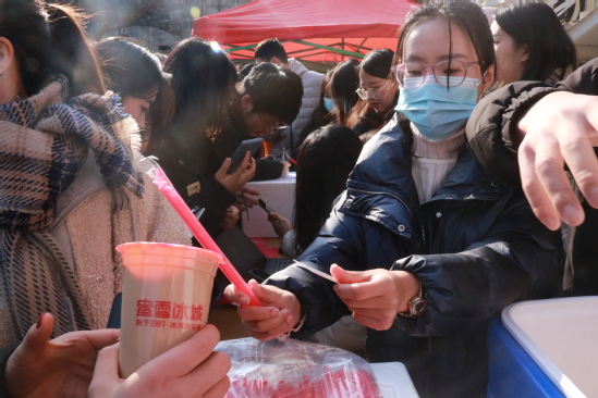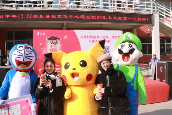 12月19日,西北师大学生餐饮文化中心开展助力师大学子考试季福利活动。在当天的活动中,由字节跳动公司赞助的一吨奶茶通过现场随机抽奖的形式免费发放给学校师生。抽中1000杯“幸运锦鲤”大奖的我校数学与统计学院2018级学生李曦将所中奖品全部送给学生公寓管理员、学校门卫、餐厅厨师、保洁人员及参加活动的同学。“叔叔阿姨们辛苦了,希望这一吨奶茶的温暖可以传递到更多人心里,让更多的师大人分享这个冬天学校送上的温暖和甜蜜!”李曦说。