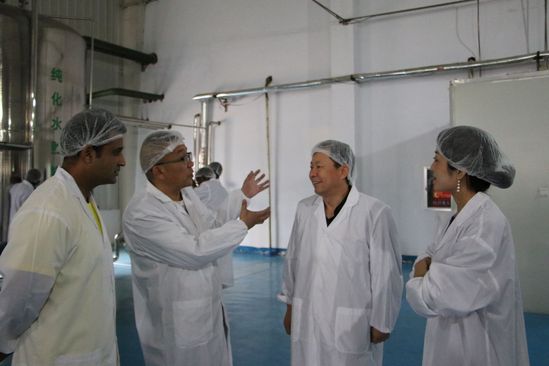于武高向西北师大留学生们介绍了车间情况,带领大家参观了输液车间、前处理车间。留学生们不仅了解了制药用水的净化程序和药材的处理步骤,还认识了黄芪、甘草等中草药材及其生长过程;随后,大家参观了陇药文化馆,共同探究了陇药文化的悠久历史和发展历程。