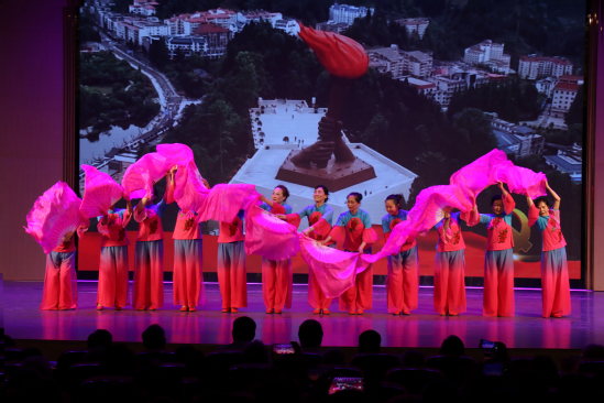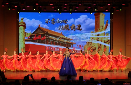 文艺演出在全体人员大合唱《没有共产党就没有新中国》的雄壮歌声中落幕。