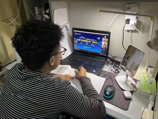 三位老师结合他们与心理学结缘的故事,分别以“如何应对不良情绪和压力”“如何增强心理‘免疫力’”“如何运用正确的方法、合适的途径允许自己‘看见’和接纳不良情绪”“如何摆脱不良情绪”“如何主动适应、积极改变学习和生活的方式与心态”等话题与同学们展开互动,引导同学们积极应对疫情期间产生的不良情绪,合理作息,助力打赢疫情防控这场无声战役。
