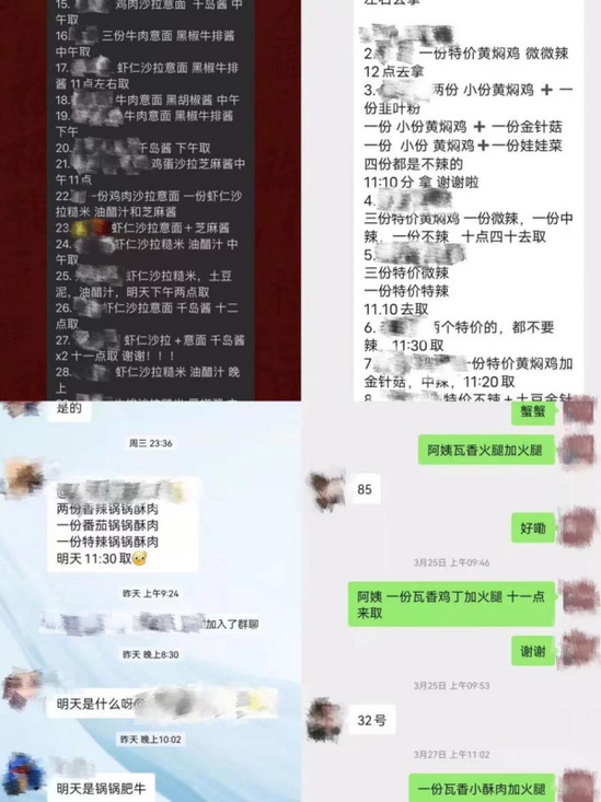 克服前期的困难后,团队手把手帮餐厅各档口负责人建群、维护运营微信群……经过团队的耐心解释与沟通,及时采纳学生意见及建议,不断调整供餐服务水平,提高了疫情期间的供餐效率,吸引了越来越多的同学进行微信群线上点餐。