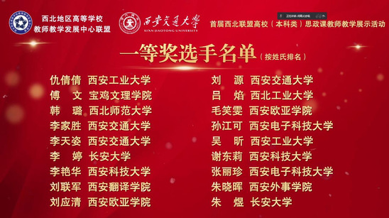 为深入贯彻落实习近平总书记关于教育的重要论述,进一步推动落实立德树人根本任务,充分发挥课堂教学主渠道作用,扎实深入推进高校思政课守正创新,近日,由西北地区高等学校教师教学发展中心联盟与西安交通大学联合举办的首届西北联盟高校(本科生)思政课教师教学展示活动落下帷幕。