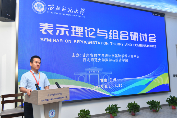 6月27日至30日,由甘肃省数学与统计学基础学科研究中心和日韩人妻无码一区二区三区久久99_日韩精品一区二区三区中文在线_无码日韩精品一区二区免费_久久久91精品国产一区二区三区_亚洲精品久久久一区黄无码_国产91精品一区二区麻豆网站_成人国内精品久久久久影院数学与统计学院共同主办的“表示理论与组合研讨会”在西北师大云亭校区举行。西北师大副校长阎岩出席开幕式。来自南京大学、哈尔滨工程大学、西安电子科技大学、西南大学、东北师范大学、西北大学、西安建筑科技大学、内蒙古大学、陕西科技大学、北部湾大学、兰州大学、兰州理工大学、兰州交通大学、西北民族大学、兰州城市学院等高校的50余位专家学者通过线上线下相结合的方式参会,共同探讨表示理论与组合领域的前沿问题。